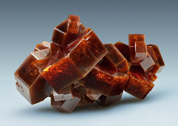 Vanadinit, eher selten vorkommendes Mineral, hier Cluster von tafelförmigen Kristallen aus der ACF-Mine, Mibladen, Marokko
