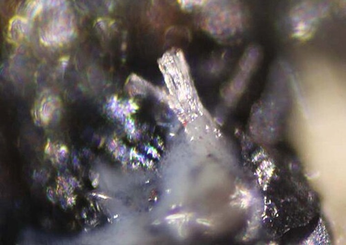 Otjisumeit, sehr seltenes Germanat, Ausbildung weißer prismatischer Kristalle, benannt nach dem Fundort Tsumeb, Namibia
