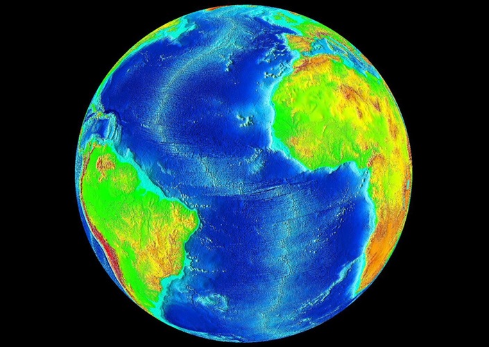 Reliefbild des Mittelatlantischen Rückens, des größten Teilstücks des globalen Ozeanrücken-Systems