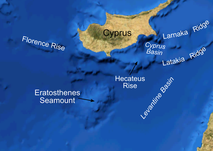 Rücken und Becken südlich von Zypern, Eratosthenes-Tiefseeberg als großes unterseeisches Massiv
