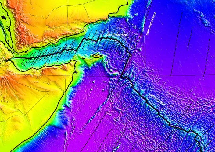 Aden-Rücken (oben), Teil eines Grabensystems zwischen Somalia und der Arabischen Halbinsel (Golf von Aden)