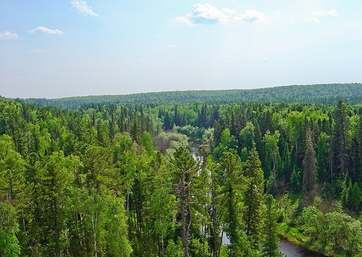 Dunkle Taiga (borealer Nadelwald) im westlichen Sibirien, Russland