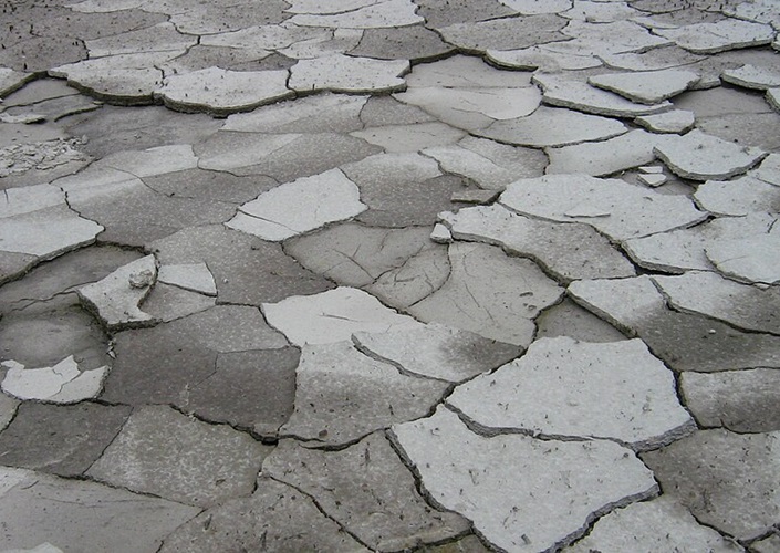 Ausgetrockneter Boden am Weg von Sulurpeta nach Sriharikota, Indien