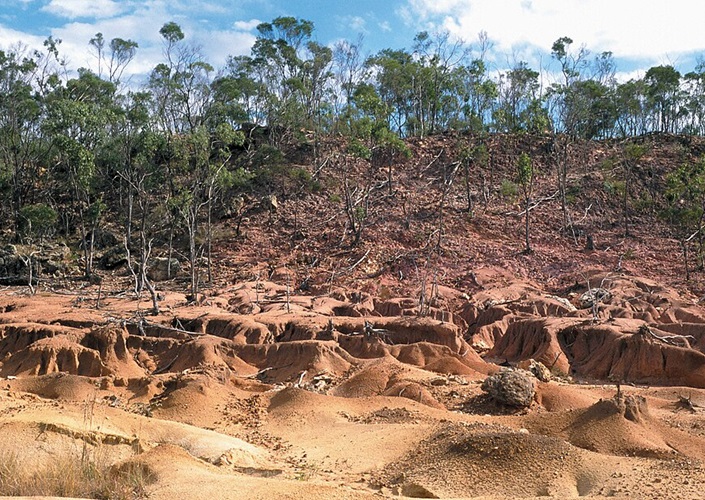 Versalzung durch Trockenheit hat zu Erosion der Hänge und Böden geführt, westlich von Charters Towers, Australien