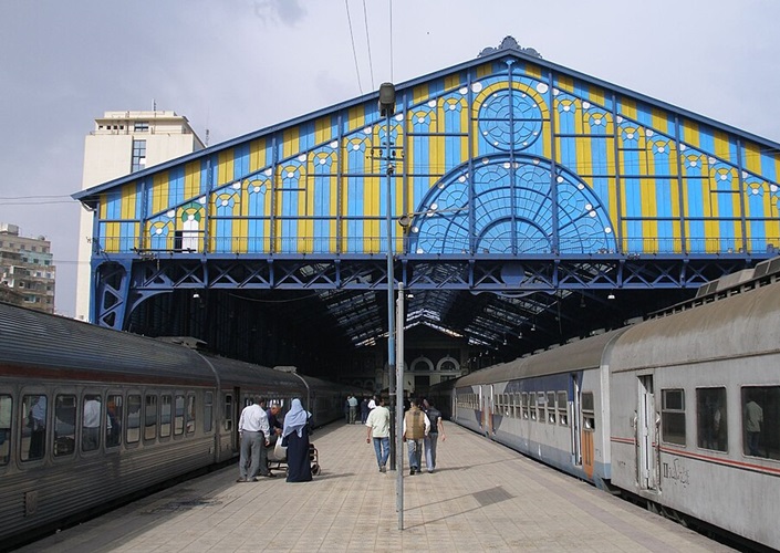 Bahnhof Alexandria, Ausgangspunkt der ersten Eisenbahnstrecke in Afrika (1856, Alexandria–Kairo), Ägypten