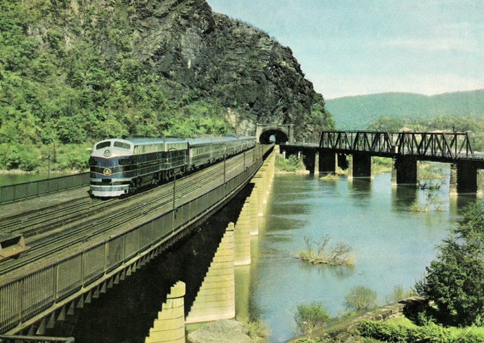 Zug der Baltimore and Ohio Railroad, der ersten Eisenbahngesellschaft Nordamerikas, Potomac River, West Virginia, Vereinigte Staaten