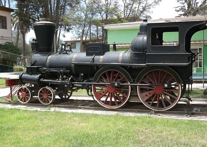 Historische Dampflok in Copiapó, 1851 von hier eine der ersten Eisenbahnstrecken des Kontinents (nach Caldera), Chile