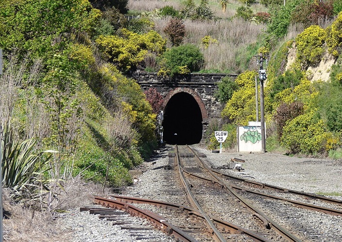 Lyttelton Rail Tunnel, ältester des Landes, in Verlängerung der allerersten Strecke von 1863, Christchurch, Südinsel, Neuseeland
